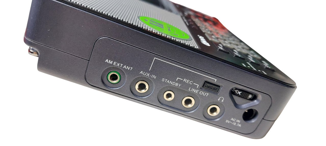 wejście anteny zewnętrznej (3,5 mm) – możliwość podłączenia anteny krótkofalarskiej lub dłuższego przewodu do nasłuchu SW